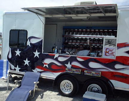 | Bio Bert'da Shirt checkin' out the surroundings | Chuck pinstripin' | Moldy and the Road Savage get together with the Ridge Runners. | Road Savage all the way from Seattle | Entrance to the Raceway |